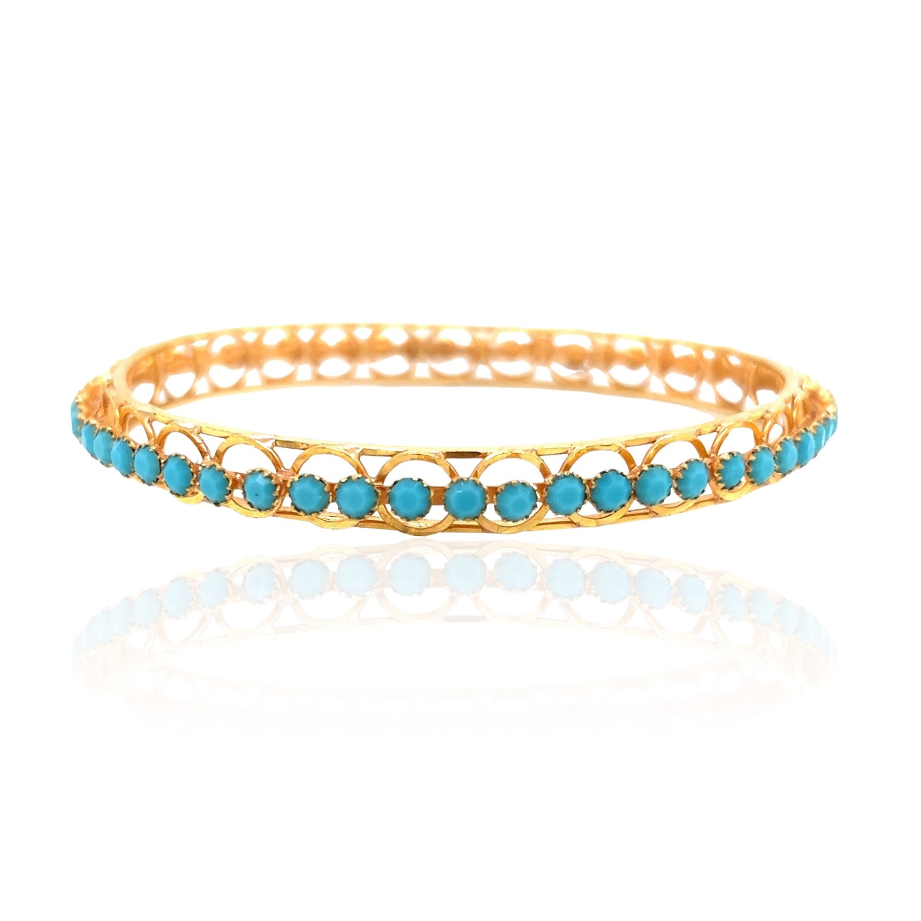 21 Karat Gold Blue Chalcedony Bangle Bracelet