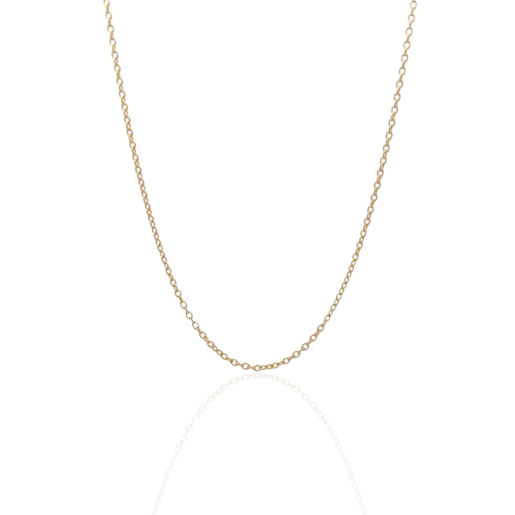 This 18 inch length and 1.5 mm thick 14 karat yellow gold cable chain is finished with a durable lobster clasp for years of wearing with or without your favorite pendant. Great for layering!