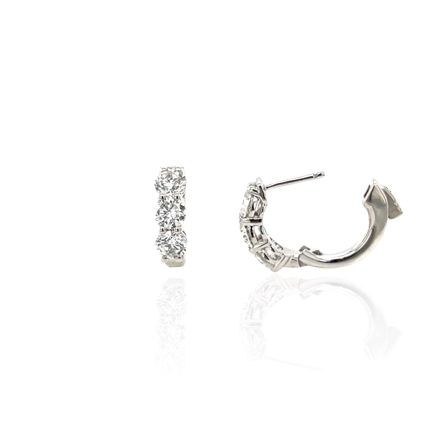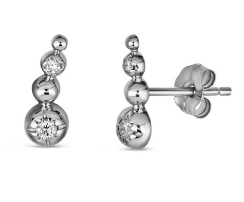 14 Karat White Gold 3-stone Diamond Stud Earrings
