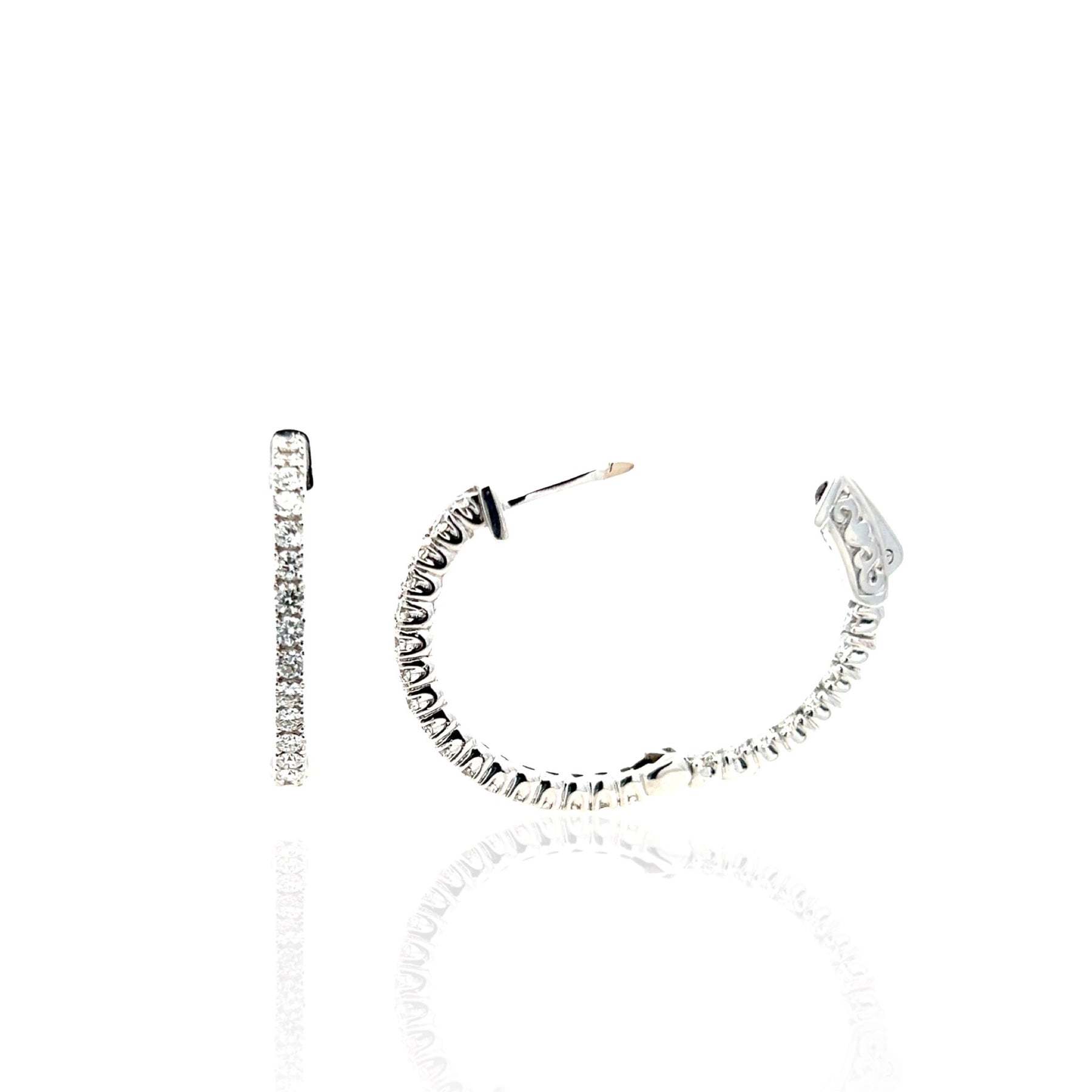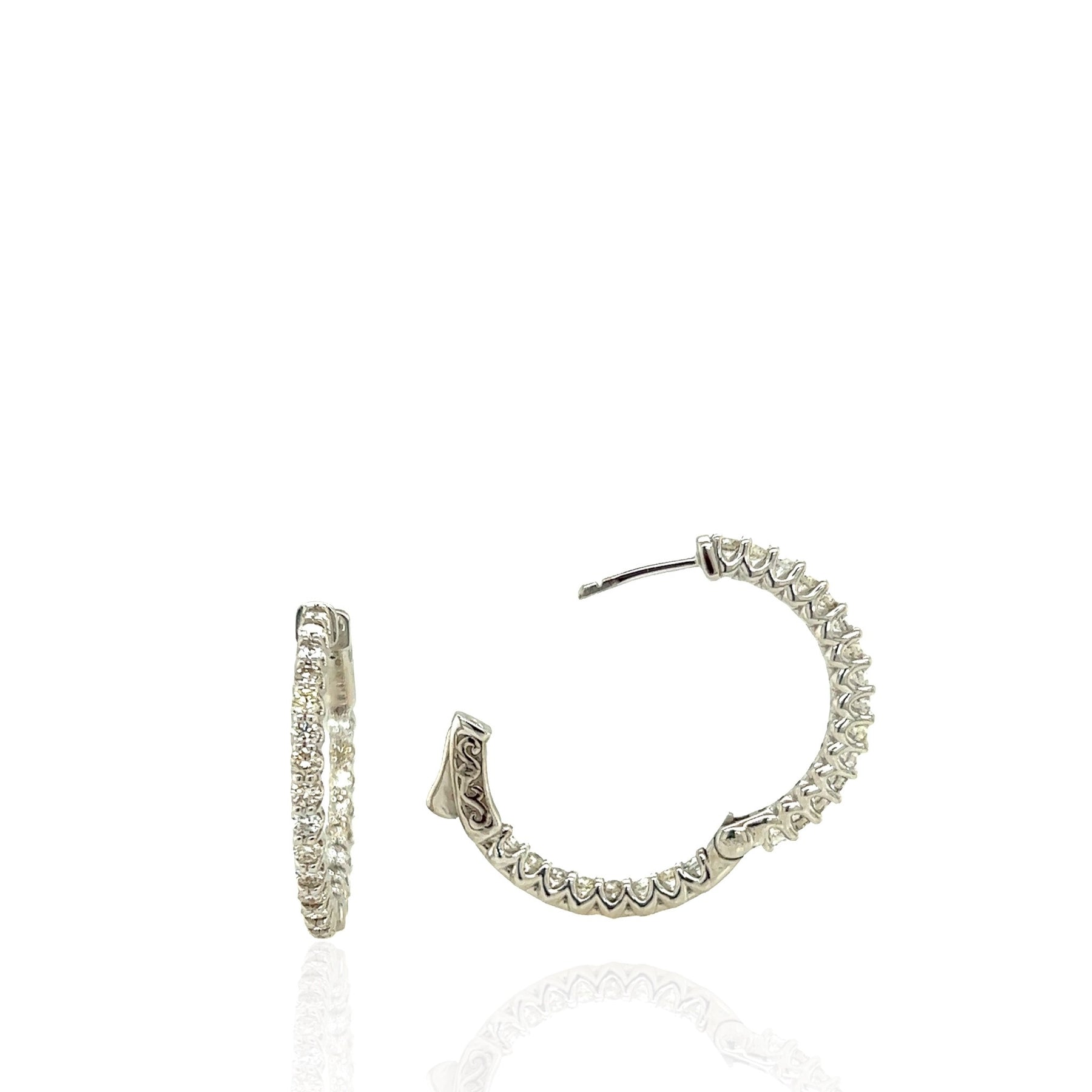 14 Karat White Gold Diamond Inside Outside Hoop Earrings