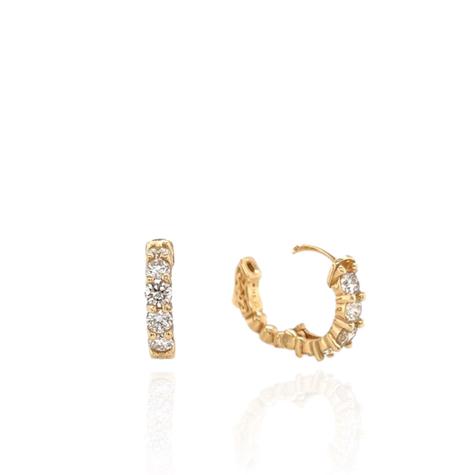 14 Karat Yellow Gold Diamond Hoop Earrings