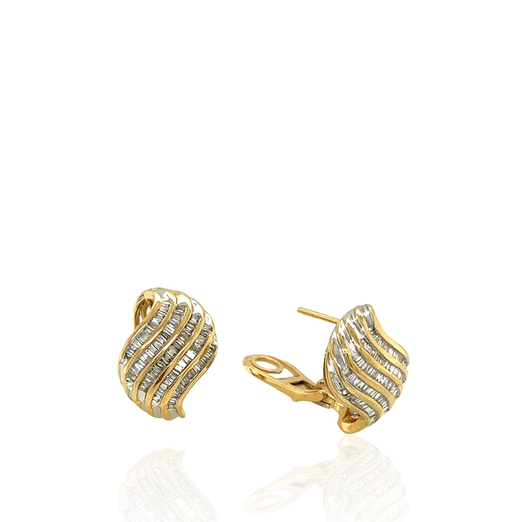 Vintage Swirl Baguette Diamond Earrings in 14K Yellow Gold, 1.00ctw