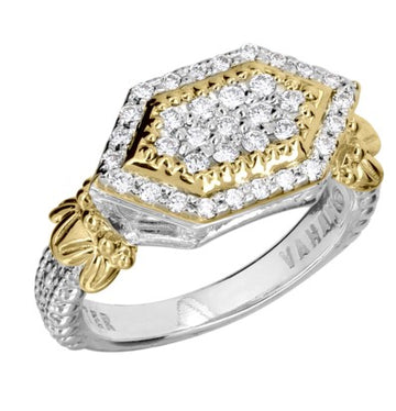14 Karat Yellow Gold Streling Silver and Diamond Ring