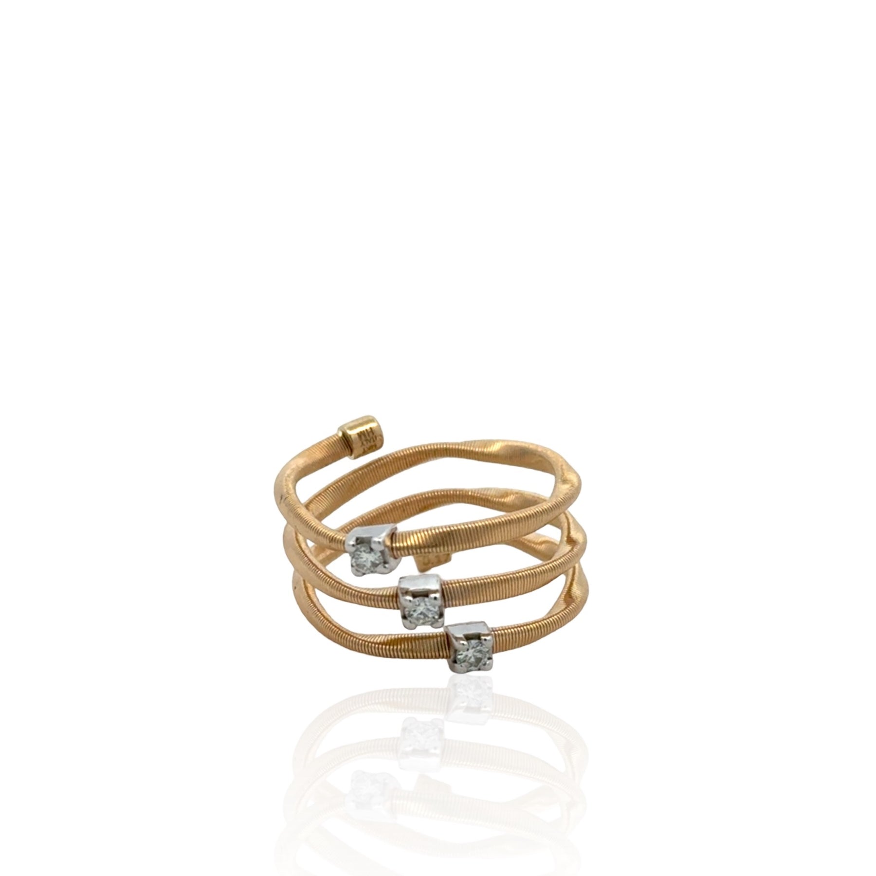 14 Karat Yellow Gold Flexible Three Row Diamond Ring