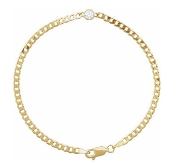 14 Karat Yellow Gold Diamond Curb Chain Bracelet