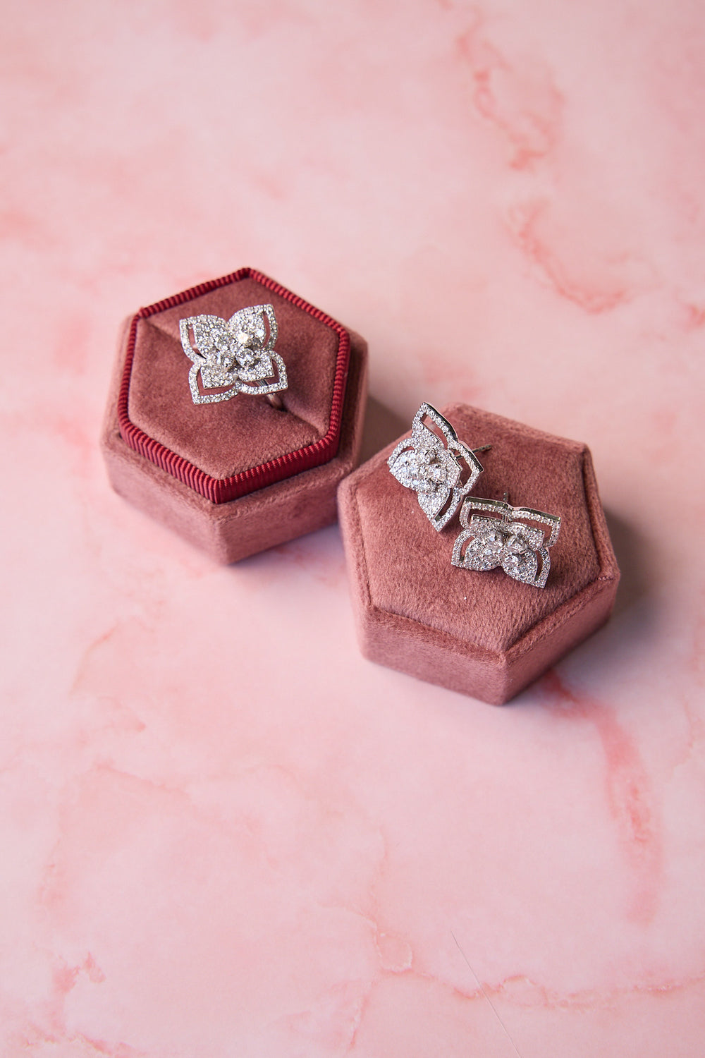 14 Karat White Gold Buttercup Diamond Stud Earrings