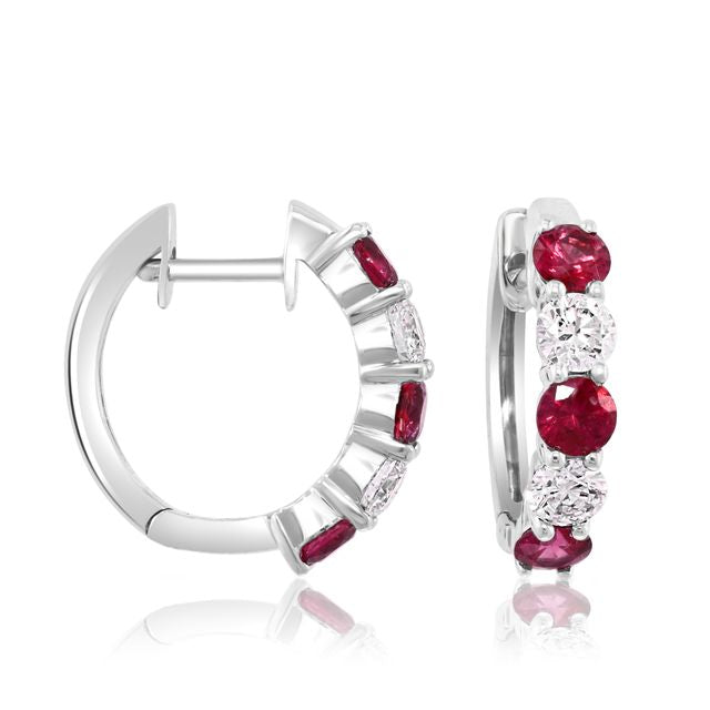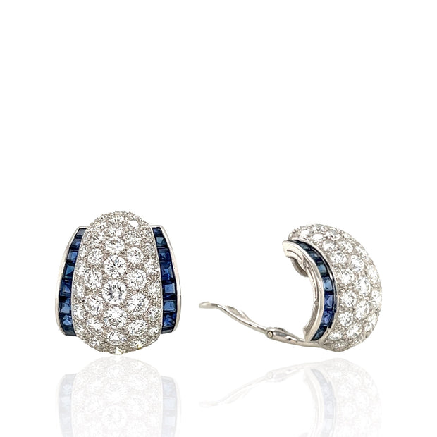 14 Karat White Gold Alternating Sapphire and Diamond Hoop Earrings