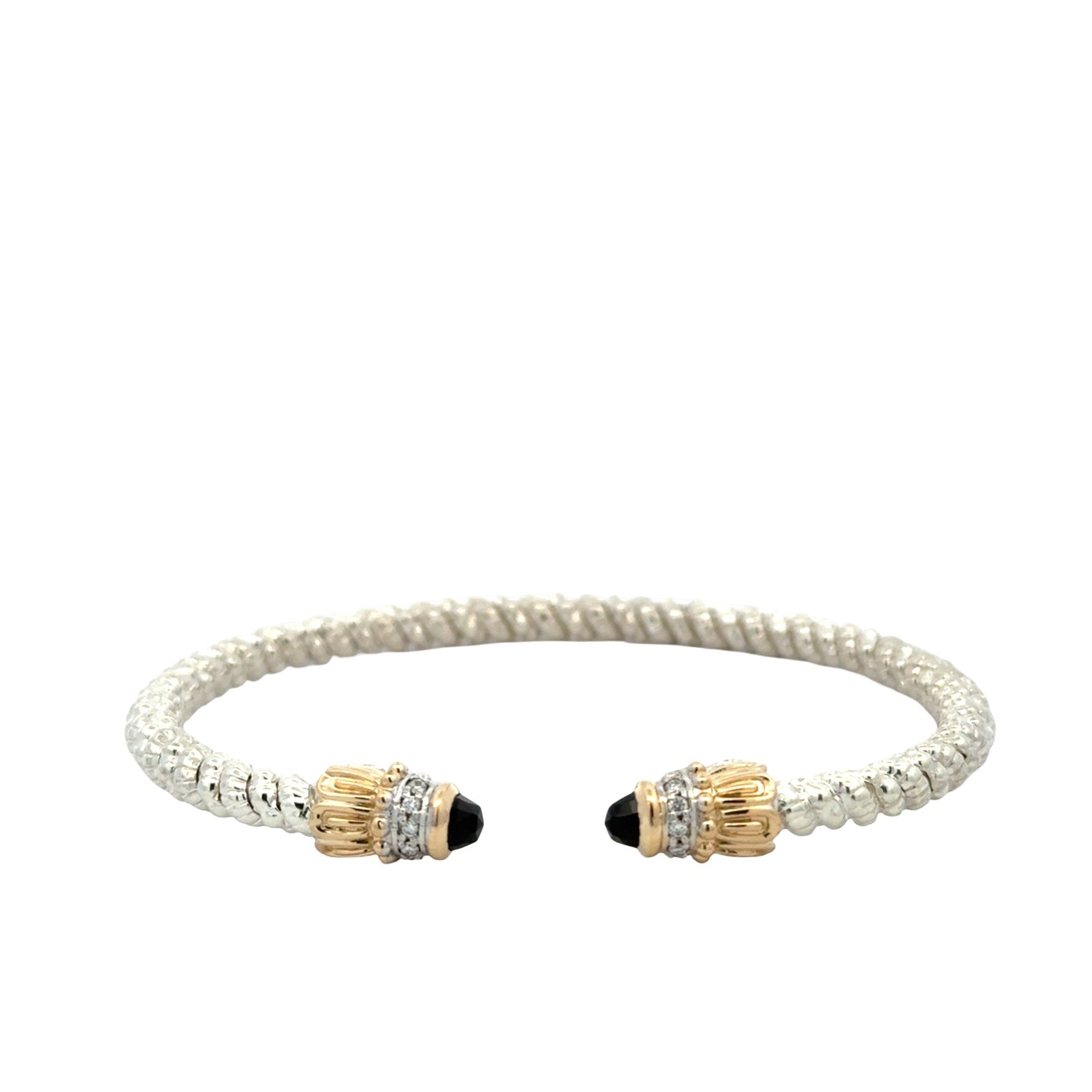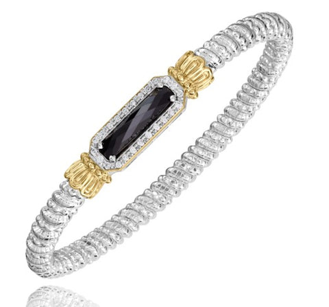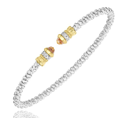 Closed Band Amethyst & Diamond Bracelet in 14K Yellow Gold & Sterling Silver
