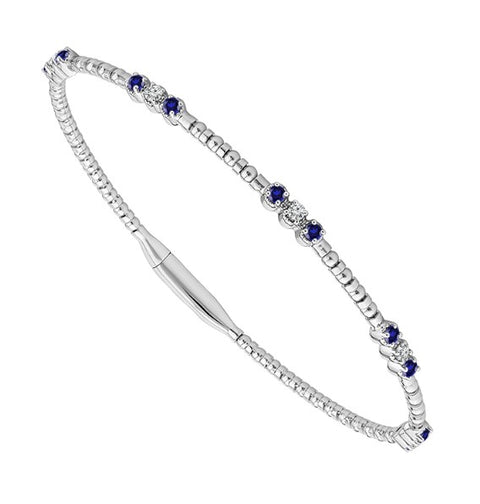 14 Karat White Gold Sapphire and Diamond Flexie Bangle Bracelet