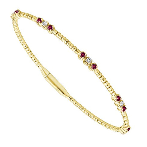 14 Karat Yellow Gold Ruby and Diamond Flexie Bangle Bracelet