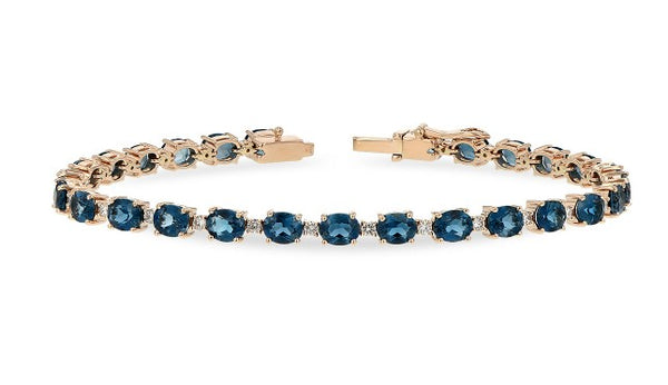 14 Karat Yellow Gold London Blue Topaz and Diamond Bracelet