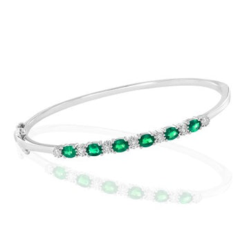 14 Karat White Gold Emerald Bangle Bracelet