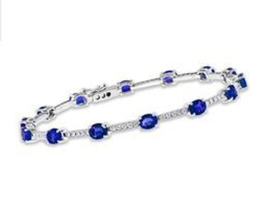 Oval Sapphire & Diamond Bracelet in 14K White Gold, 7.30ctw