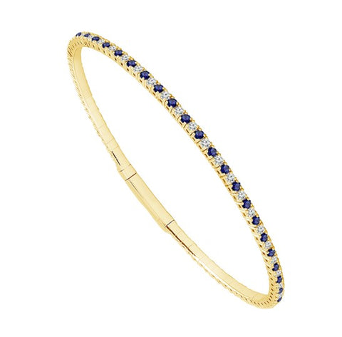 14 Karat Yellow Gold Sapphire and Diamond Flexie Bangle Bracelet