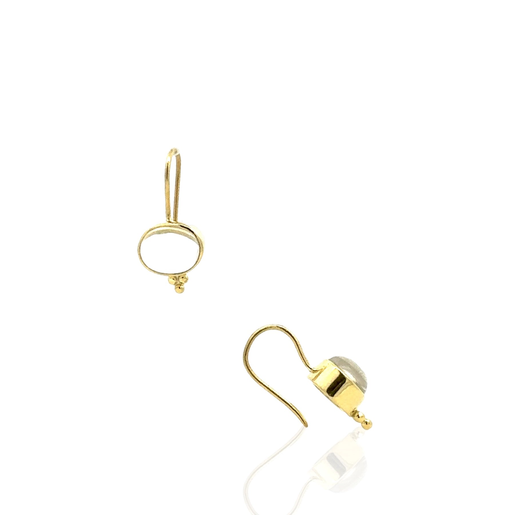 14 Karat Green Gold Rainbow Moonstone Earrings