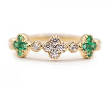 14 Karat Yellow Gold Emerald and Diamond Clover Ring