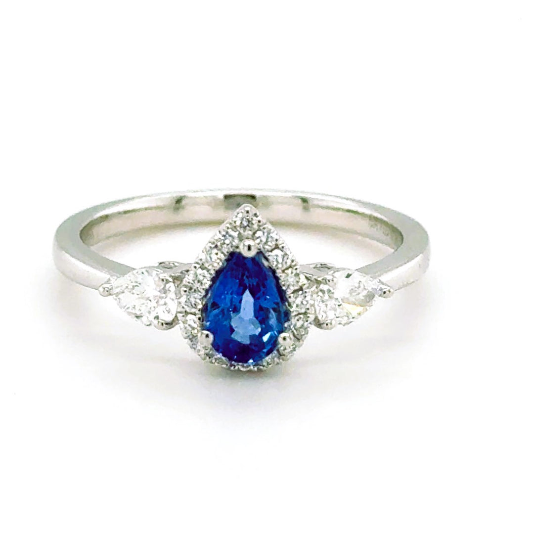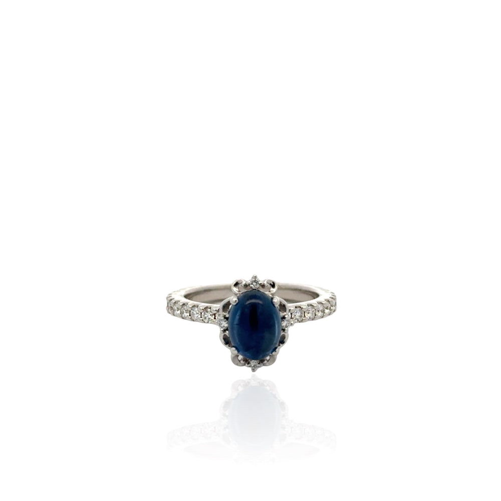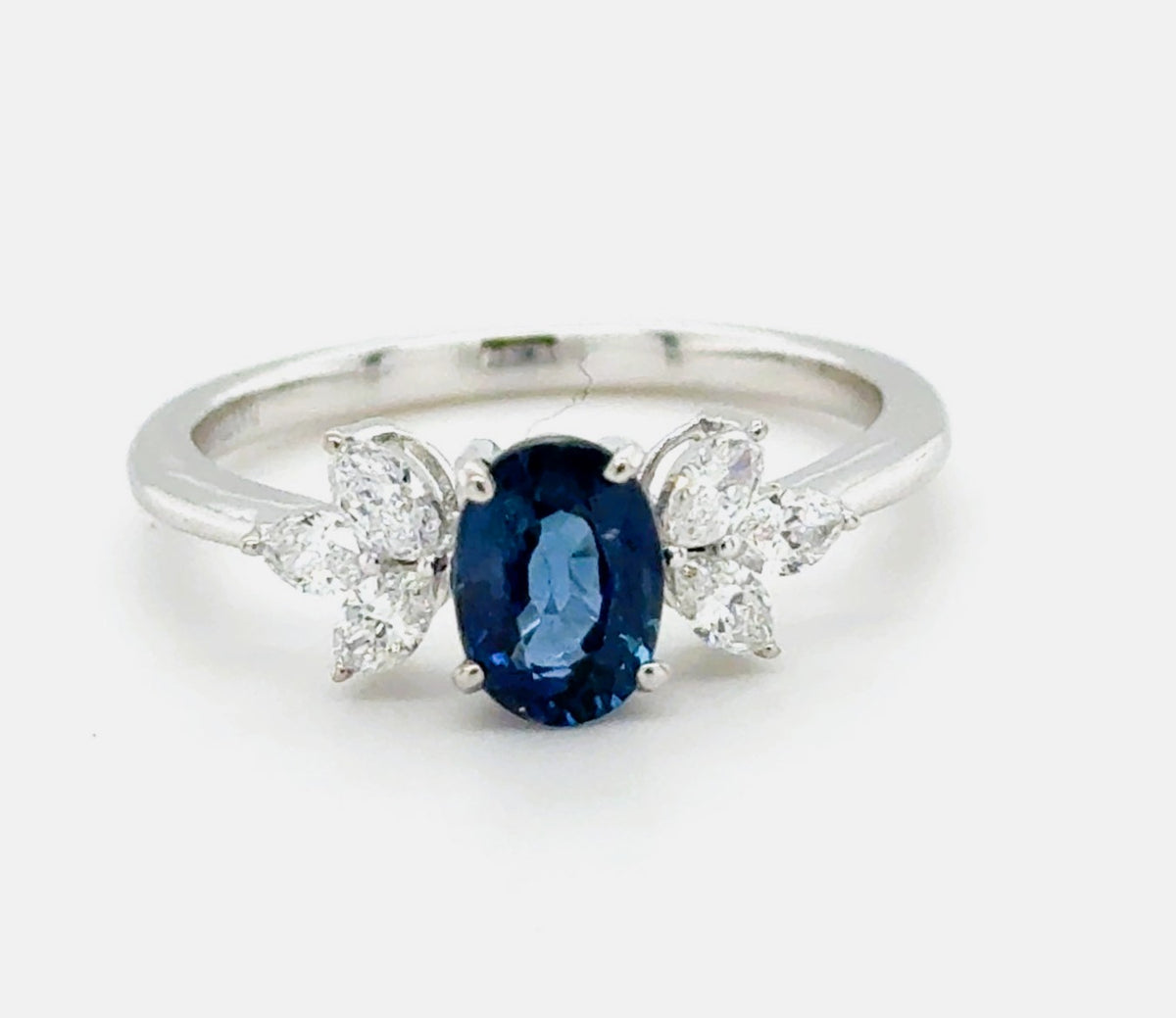 Oval Sapphire & Marquise Diamond Ring in 18K White Gold, 1.25ctw