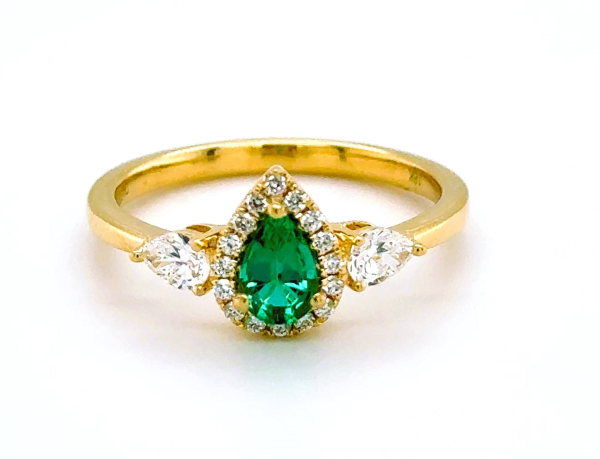 Pear-Shaped Emerald & Diamond Ring in 18K Yellow Gold, 0.72ctw