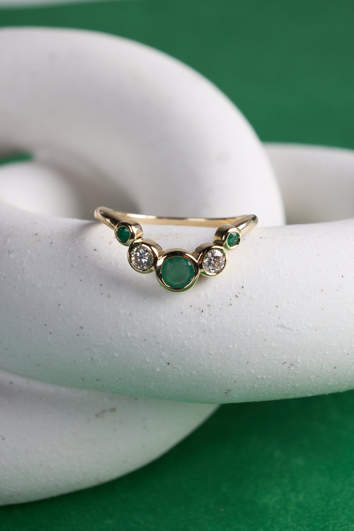 Emerald & Diamond Curved Band in 14K Yellow Gold, 0.57ctw