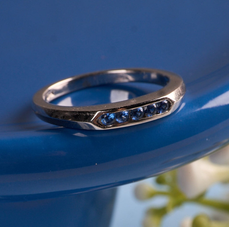 14 Karat Yellow Gold Sapphire and Diamond Curved Band