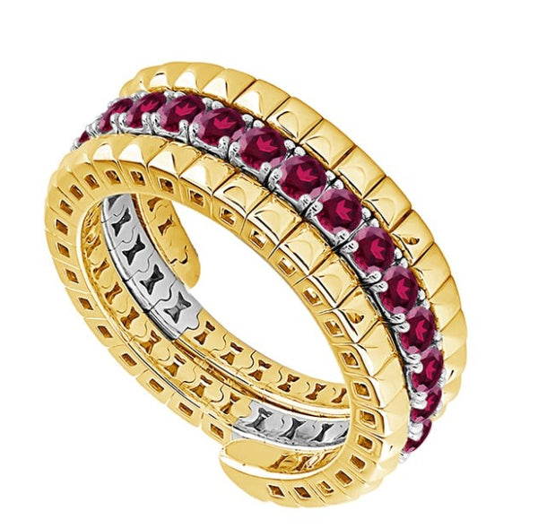 14 Karat Yellow Gold Diamond and Ruby Curved Band