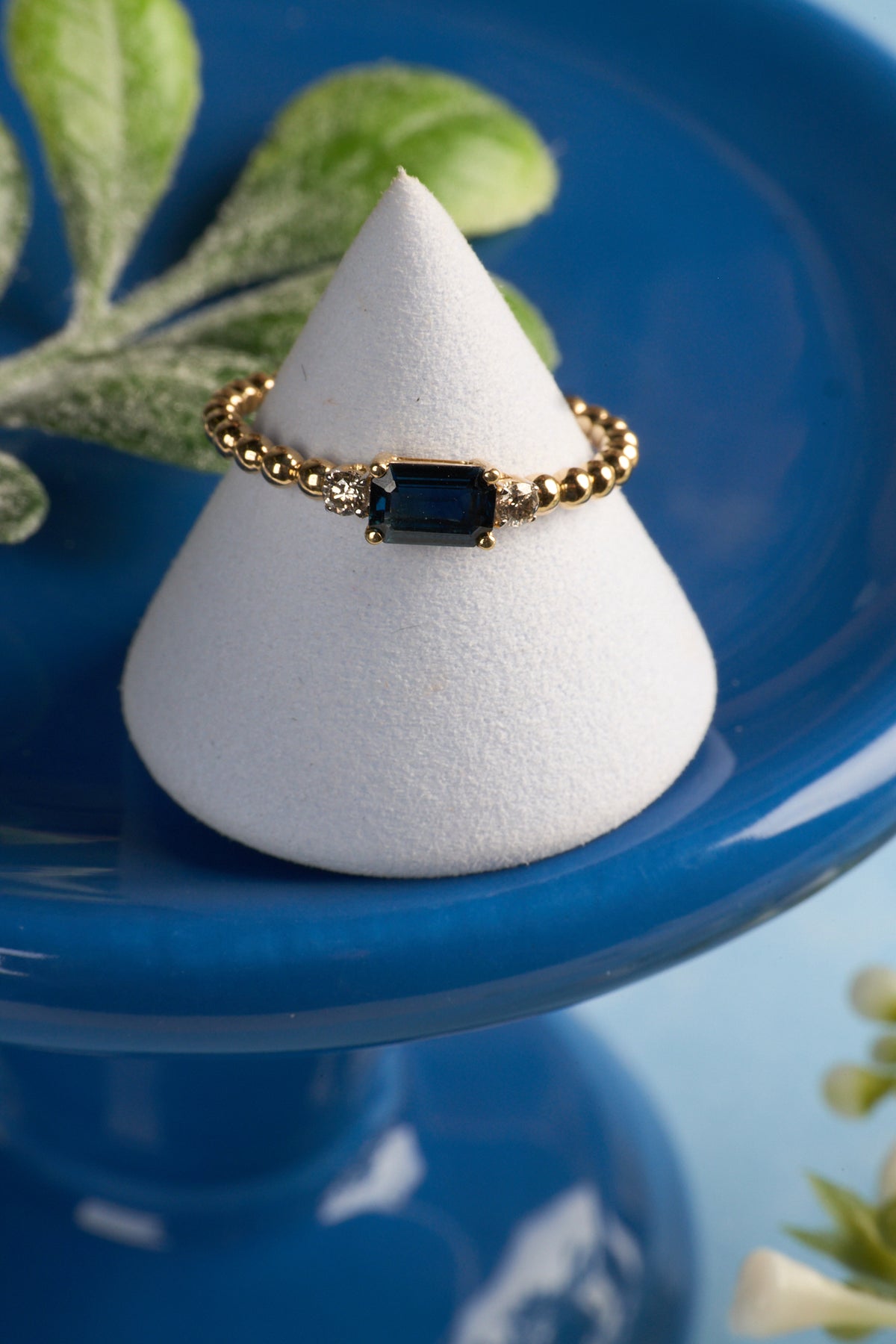 14 Karat Yellow Gold Sapphire and Diamond Ring
