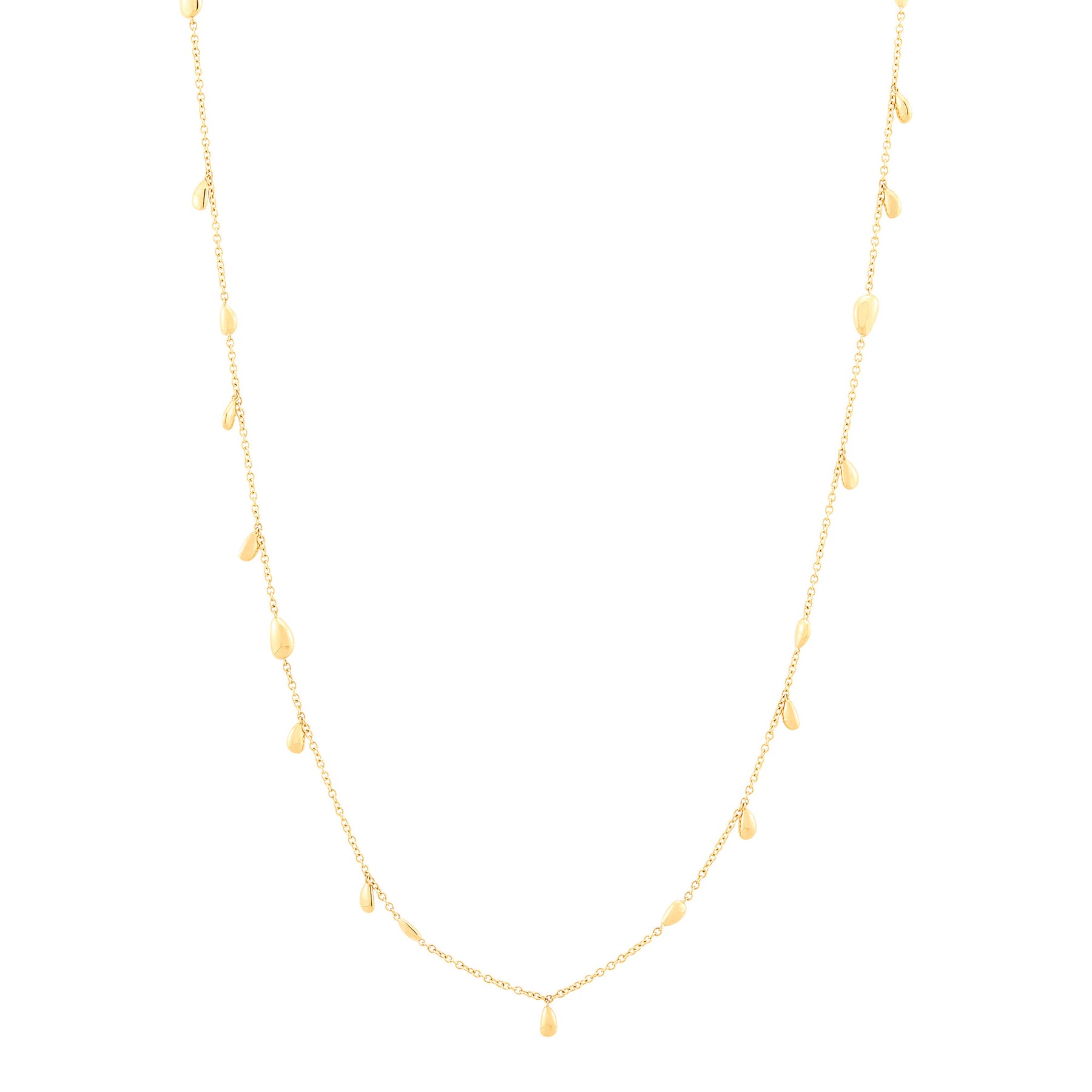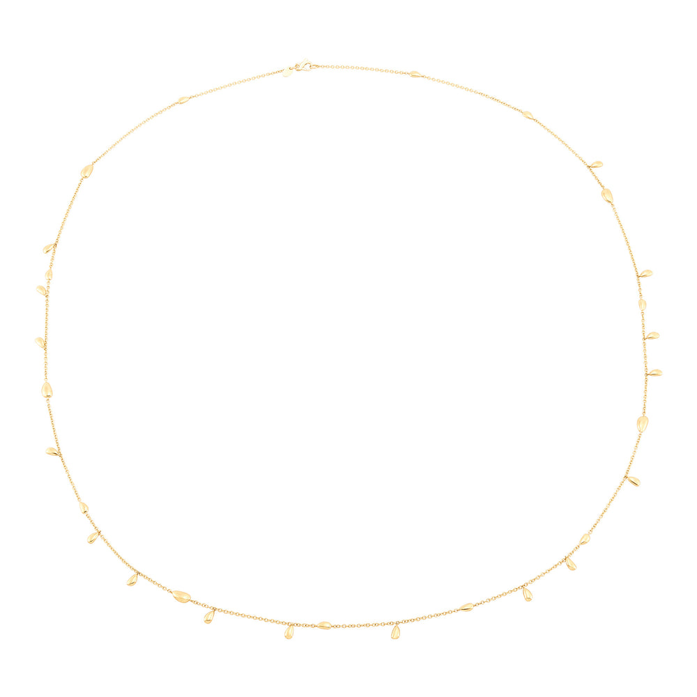 Satin & Polished Graduated Oval Disk Necklace in 14K Yellow Gold