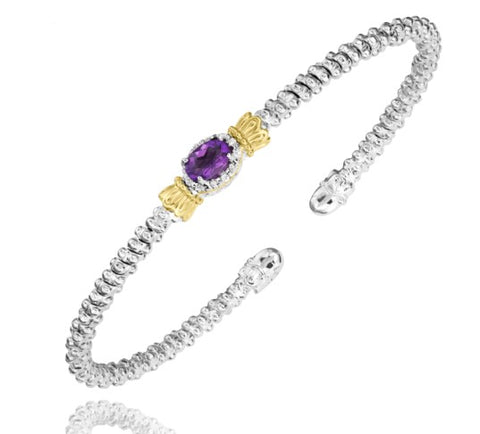 Closed Band Amethyst & Diamond Bracelet in 14K Yellow Gold & Sterling Silver