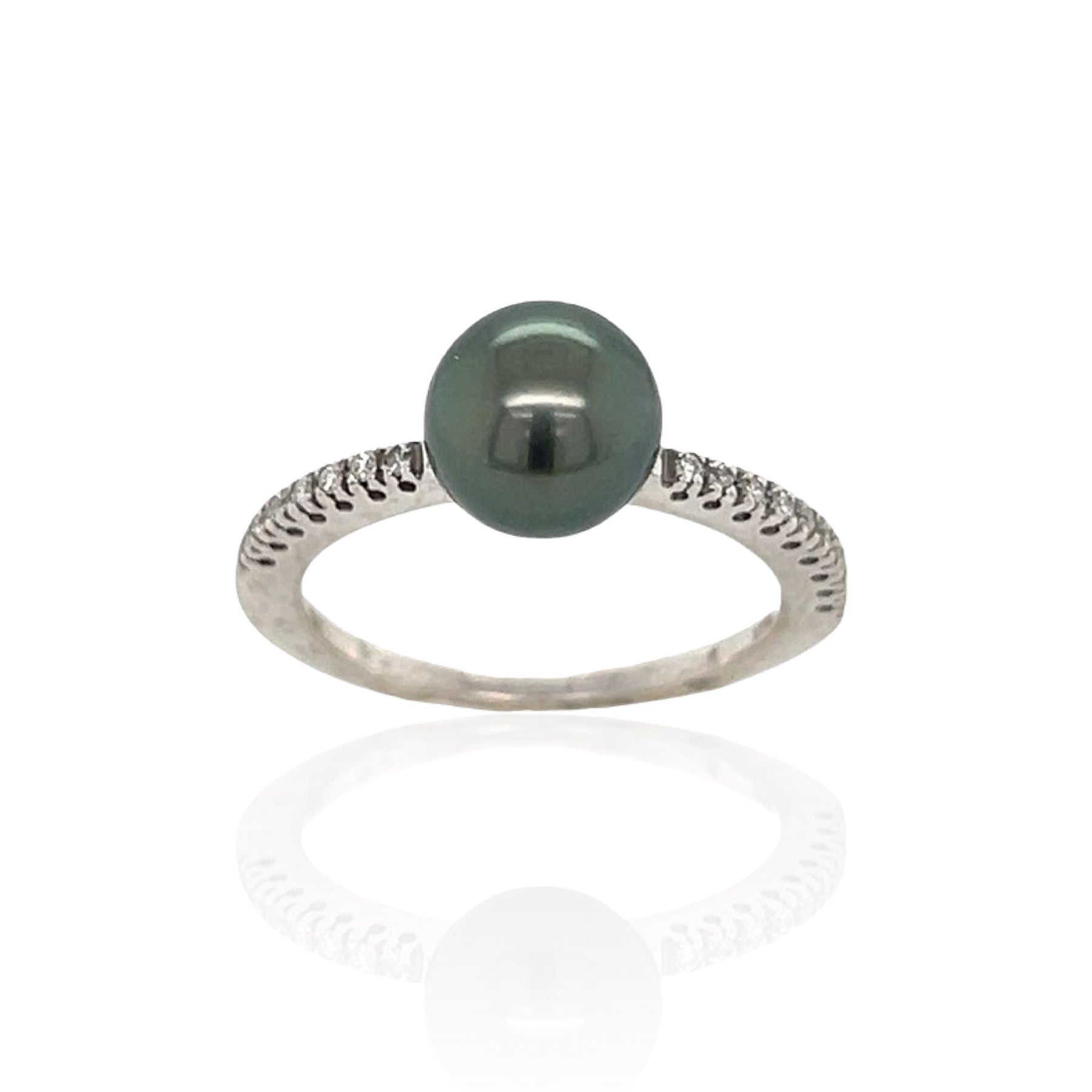 14 Karat White Gold Black Tahitian Pearl and Diamond Ring