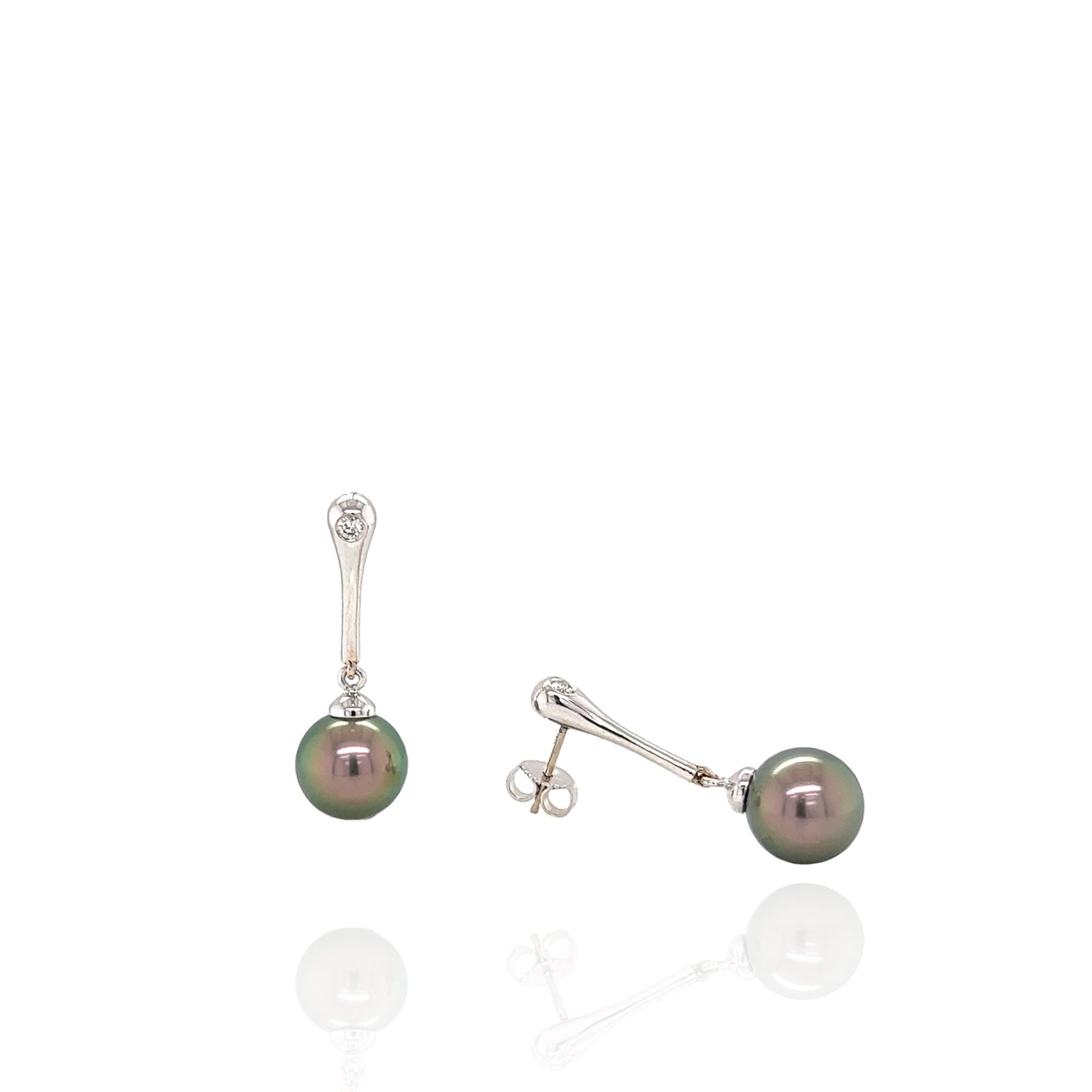18 Karat White Gold Black Tahitian Pearl and Diamond Earrings