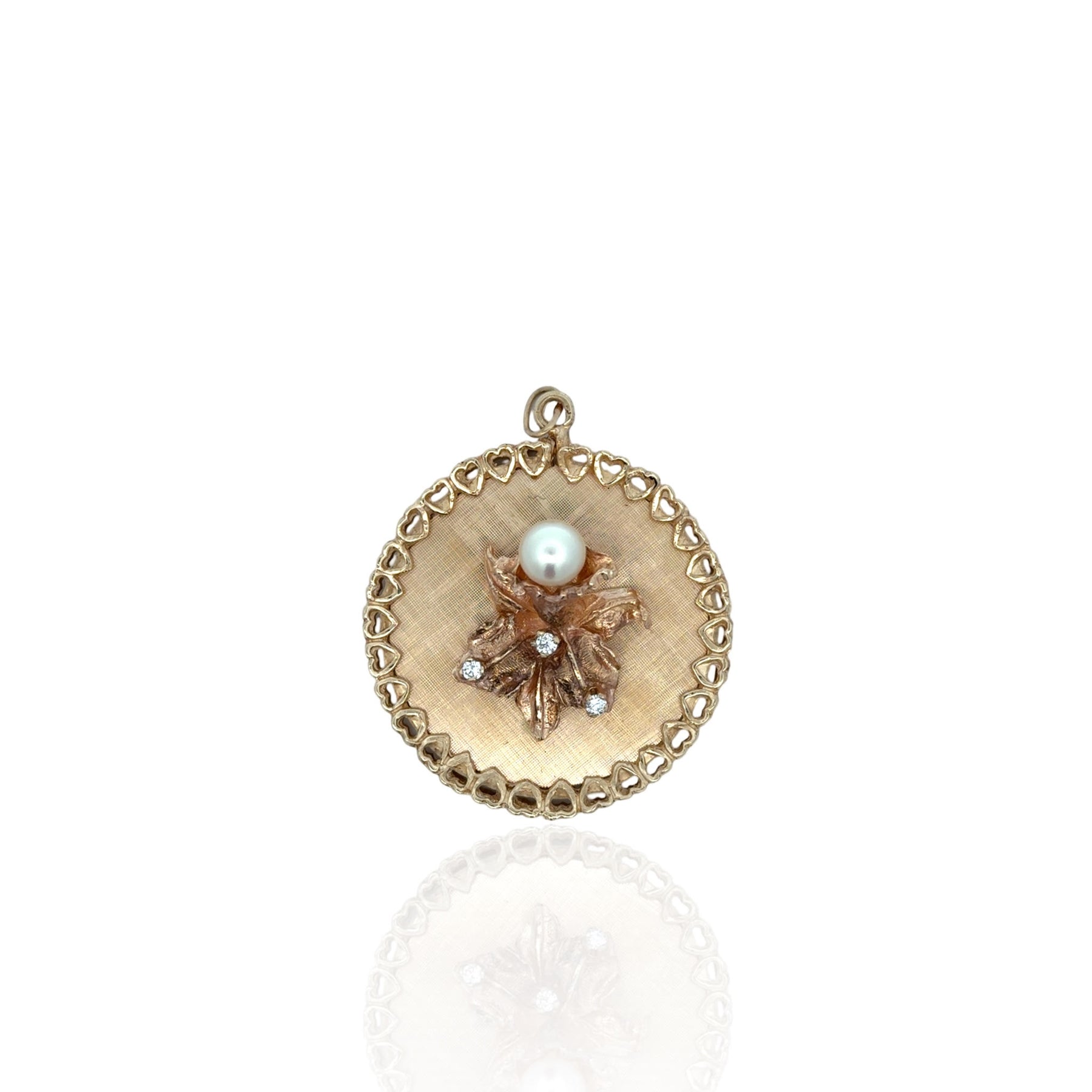 14 Karat Yellow Gold, Pearl, Synthetic Ruby and Synthetic Emerald Gold Charm