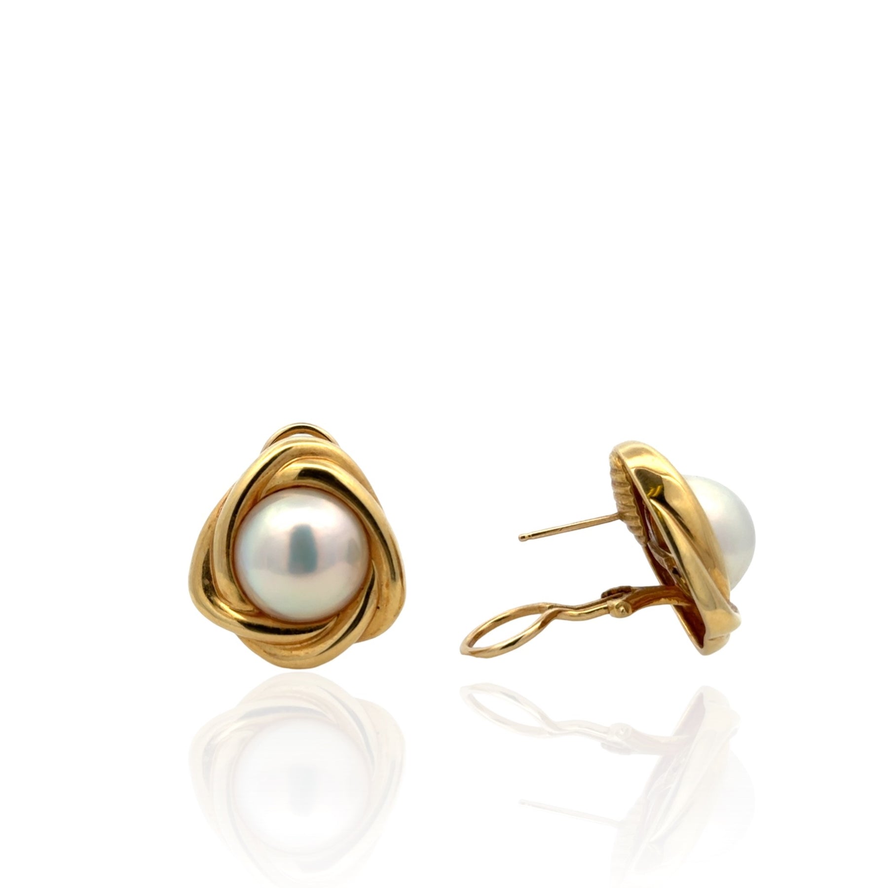 14 Karat Yellow Gold Freshwater Pearl and Diamond Earrings