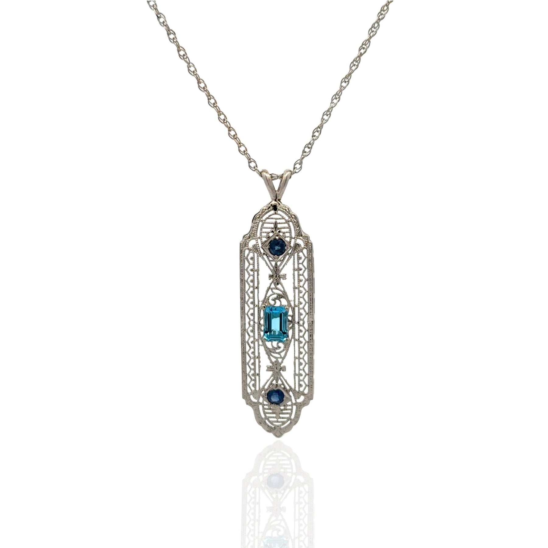 14 Karat White and Yellow Gold Diamond Moon and Stars Necklace