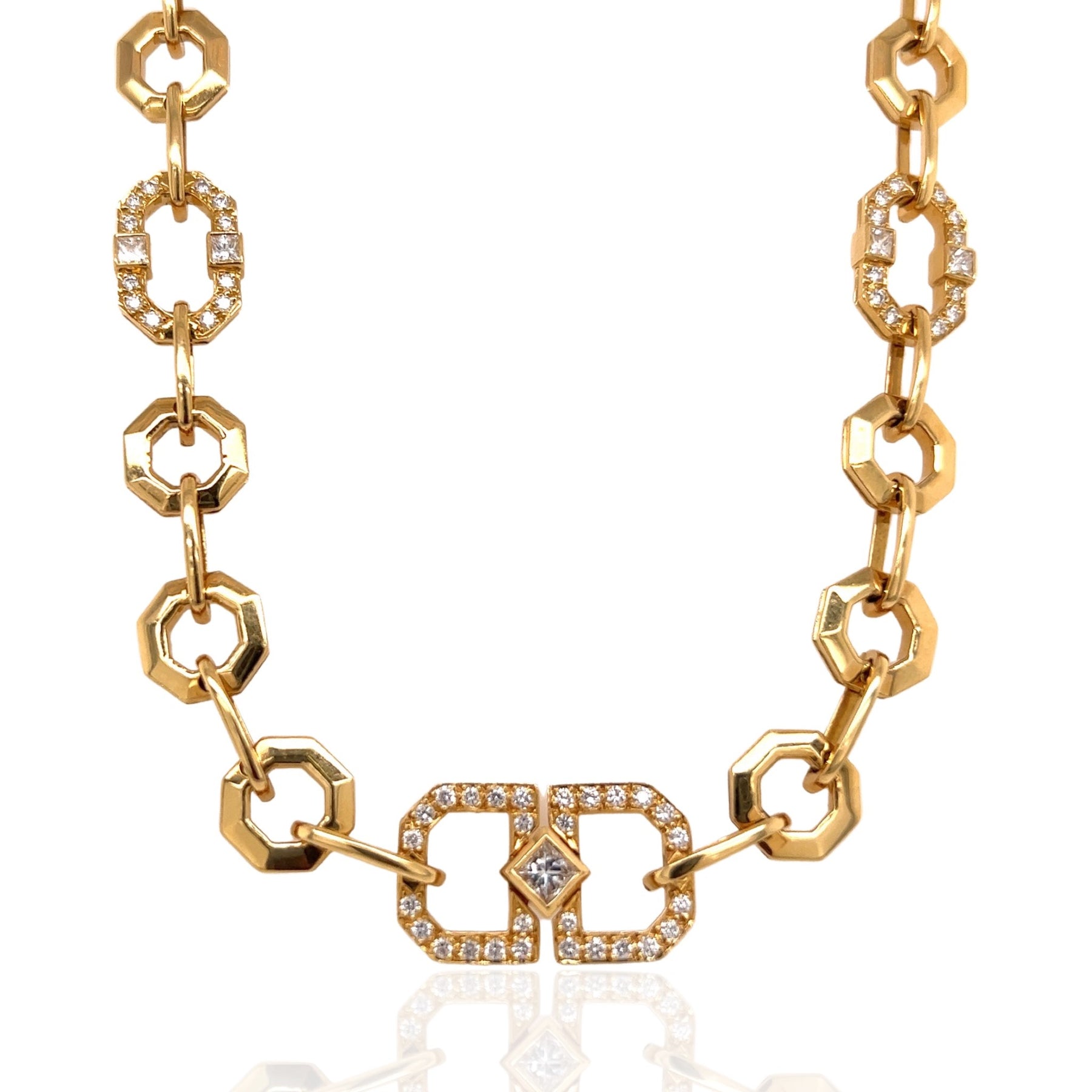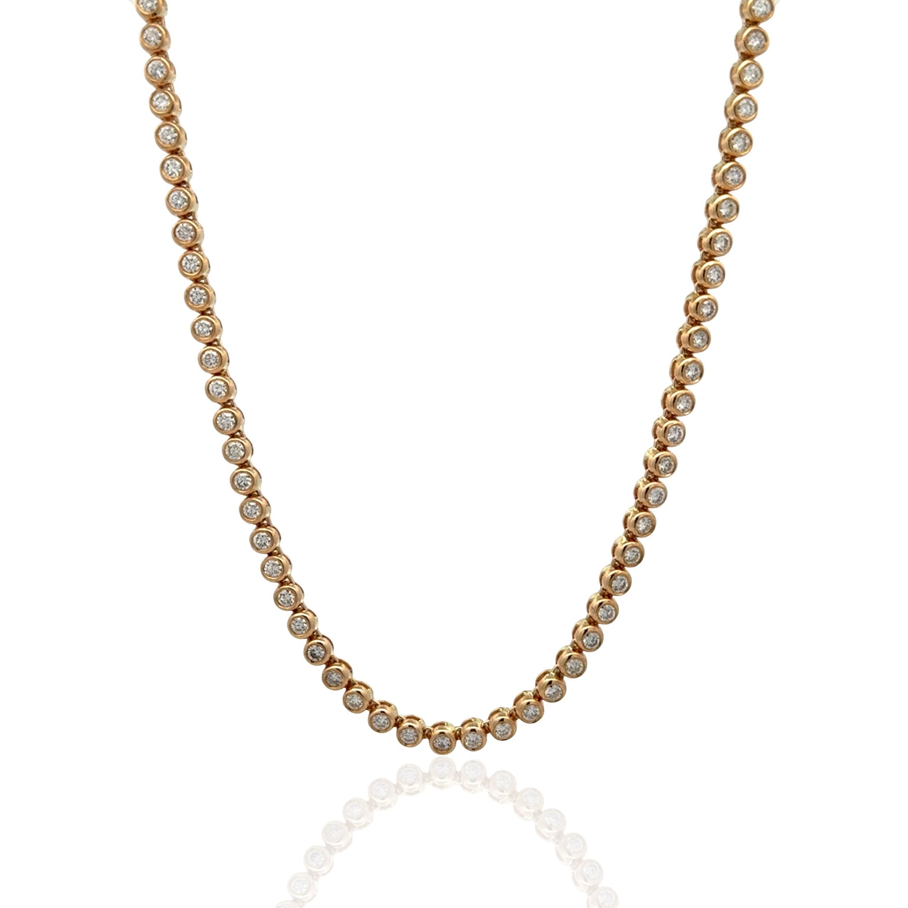 14 Karat Yellow Gold Bezel Set Diamond Line Necklace