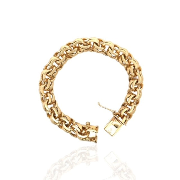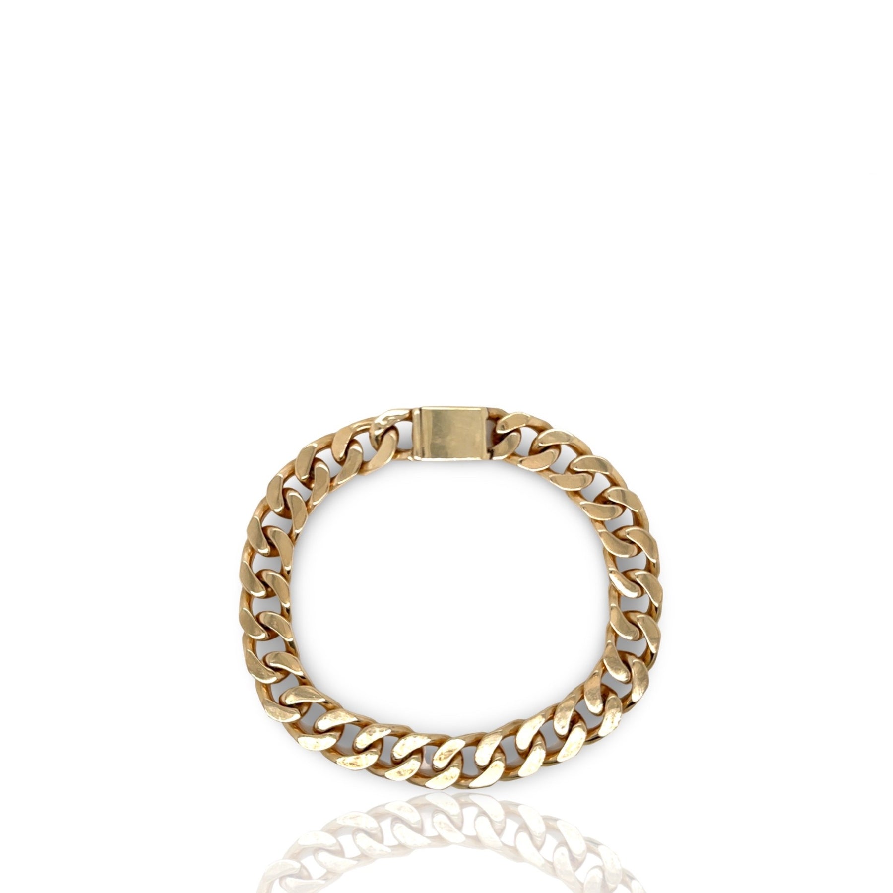 14 Karat Yellow Gold Solid Flat Link Curb Chain Bracelet