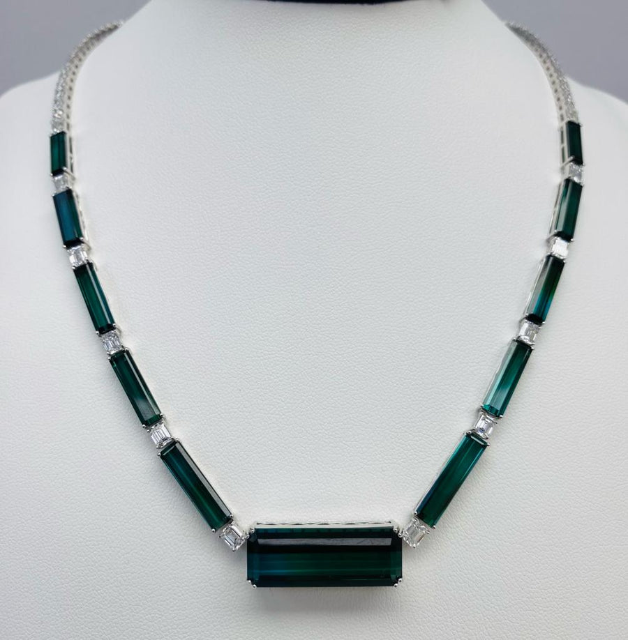 18 Karat White Gold Tourmaline and Diamond Necklace