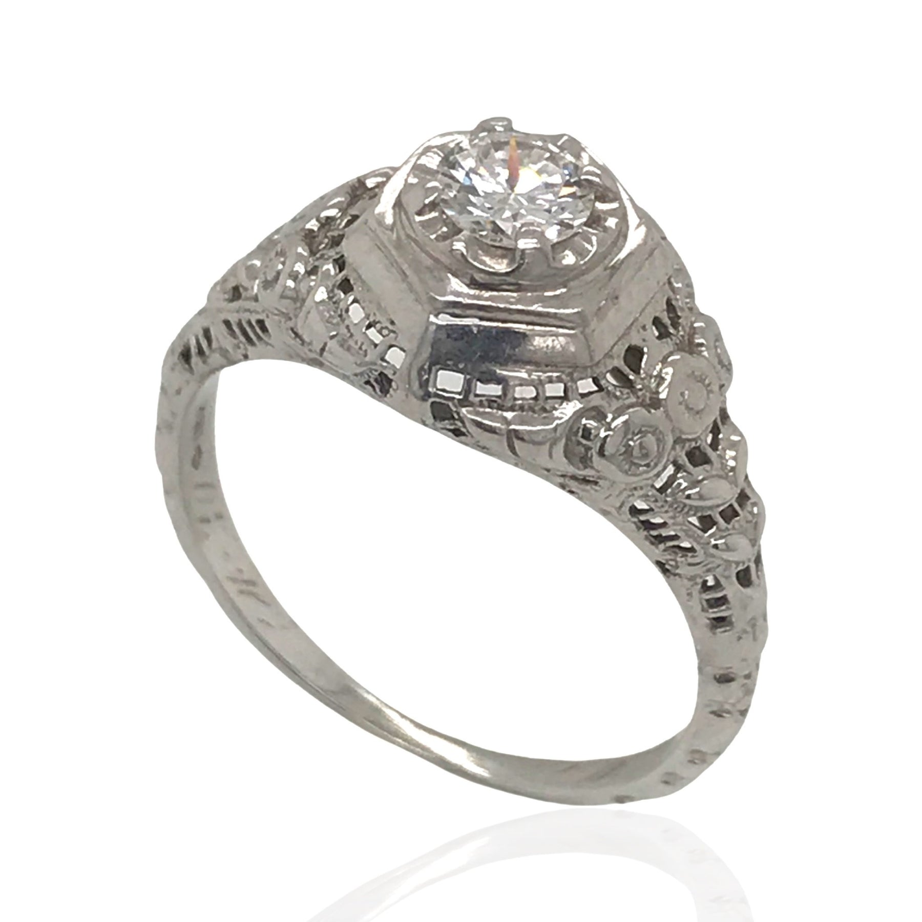 18 Karat White Gold Art Deco Diamond Ring with Sapphire Accents