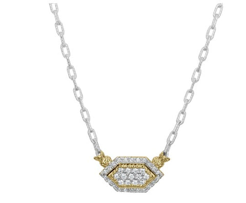 14 Karat Yellow Gold Sterling Silver Diamond Necklace