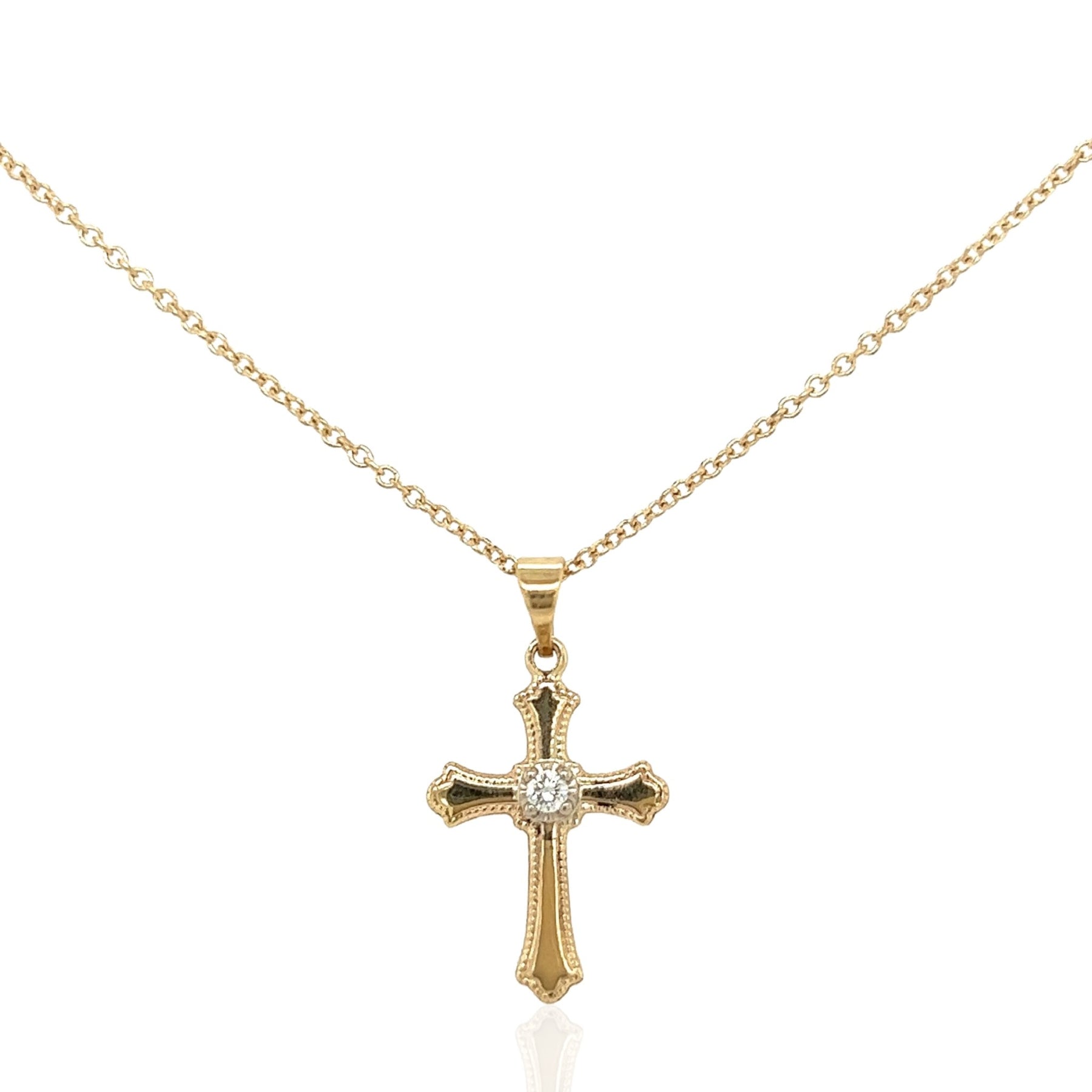 14 Karat Yellow Gold and Diamond Cross Pendant