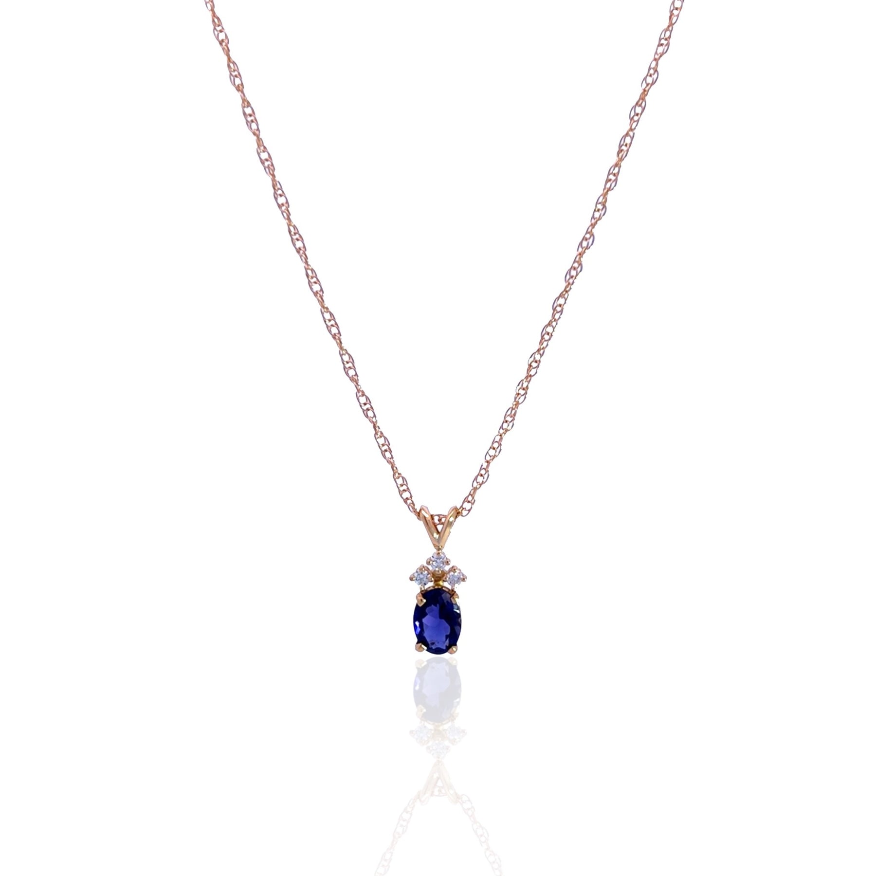 14 Karat Yellow Gold Iolite and Diamond Necklace