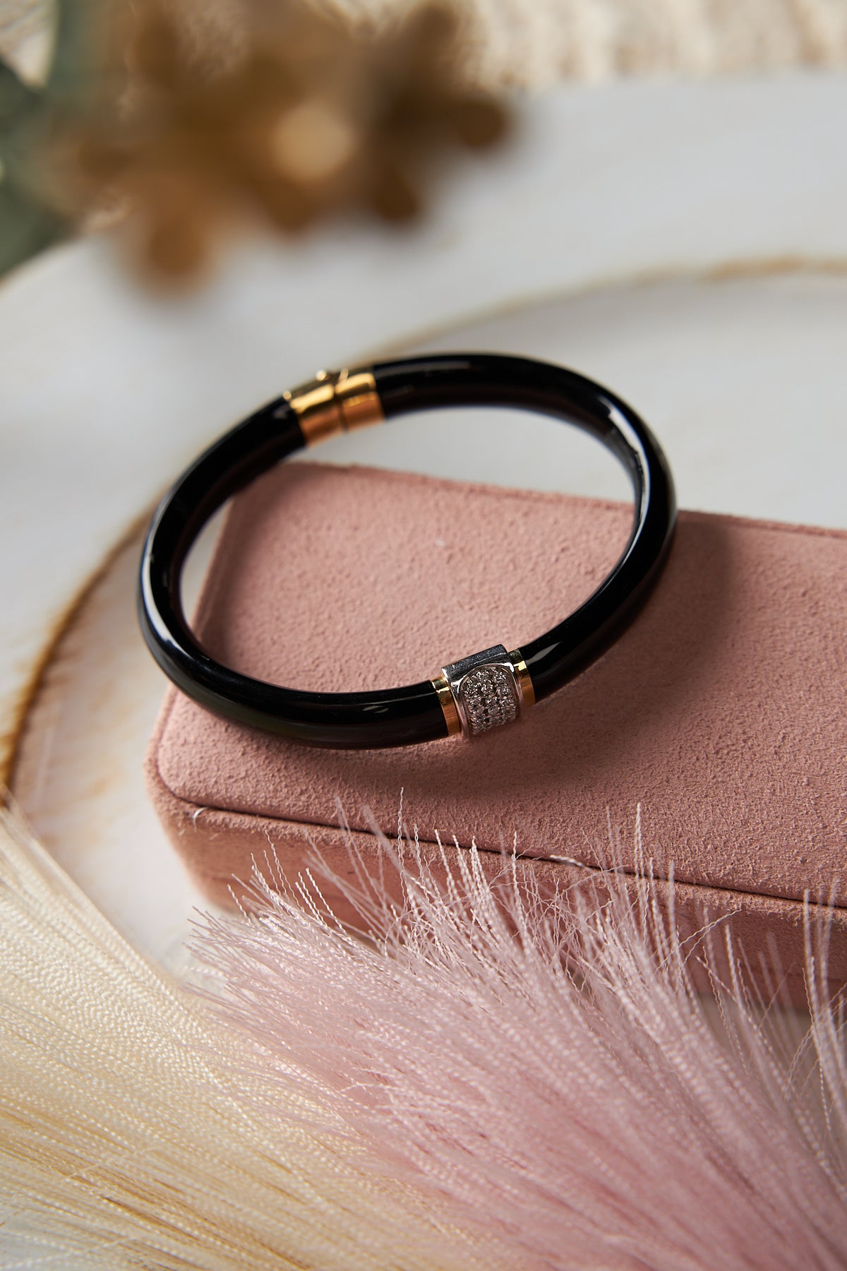18 Karat Yellow and White Gold Enamel and Diamond Bracelet