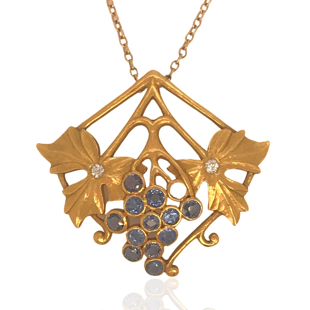 14 Karat Yellow Gold and Sapphire Art Nouveau Grape Pendant