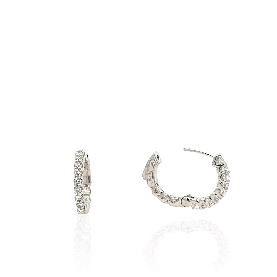 These stunning diamond earrings are a must-have for any jewelry collection. Made with 14K white gold, these u-prong hoops are both elegant and durable. The hoops measure 2.3mm in width and feature a total of 42 round-cut diamonds, totaling 2.06 carats. The diamonds are carefully set in and out of the hoops, creating a beautiful and eye-catching design. These earrings are perfect for any occasion, whether it's a formal event or a casual outing. Add a touch of sparkle to your look with these gorgeous diamond earrings.