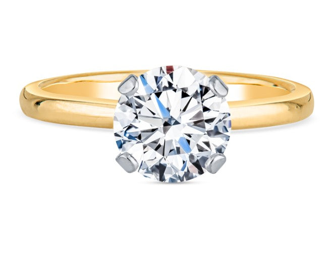 Elevate your style with our 18K gold comfort fit shank ring. Featuring a 1 carat JSN head, this ring is the perfect combination of elegance and luxury. The sleek design and intricate details make it a must-have for any fashion-forward individual.